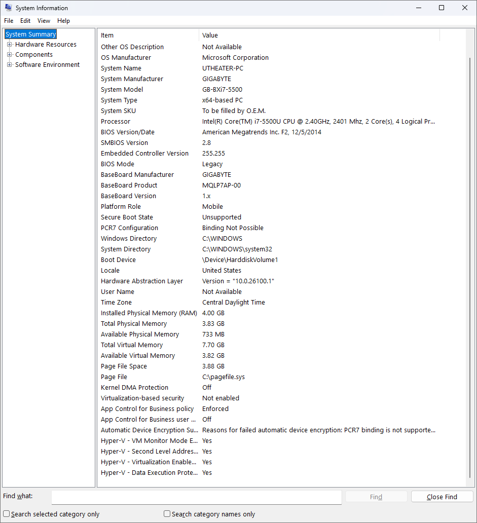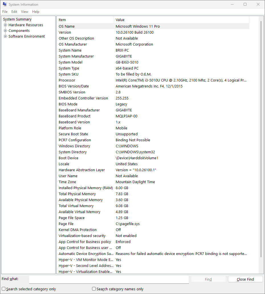 Here is the report from msinfo showing the specs on this system, and Device Manager showing that all of the drivers were either updated or the existing ones usable: