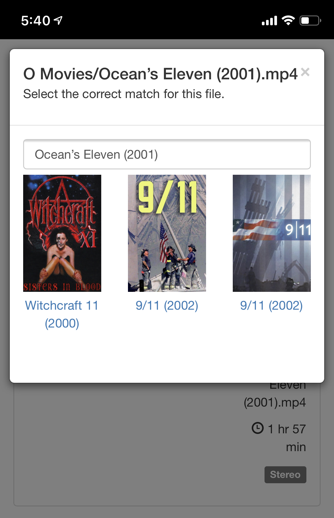 Example: Ocean’s Eleven (2001) will not match even when I attempt the option to fix match it doesn’t appear.