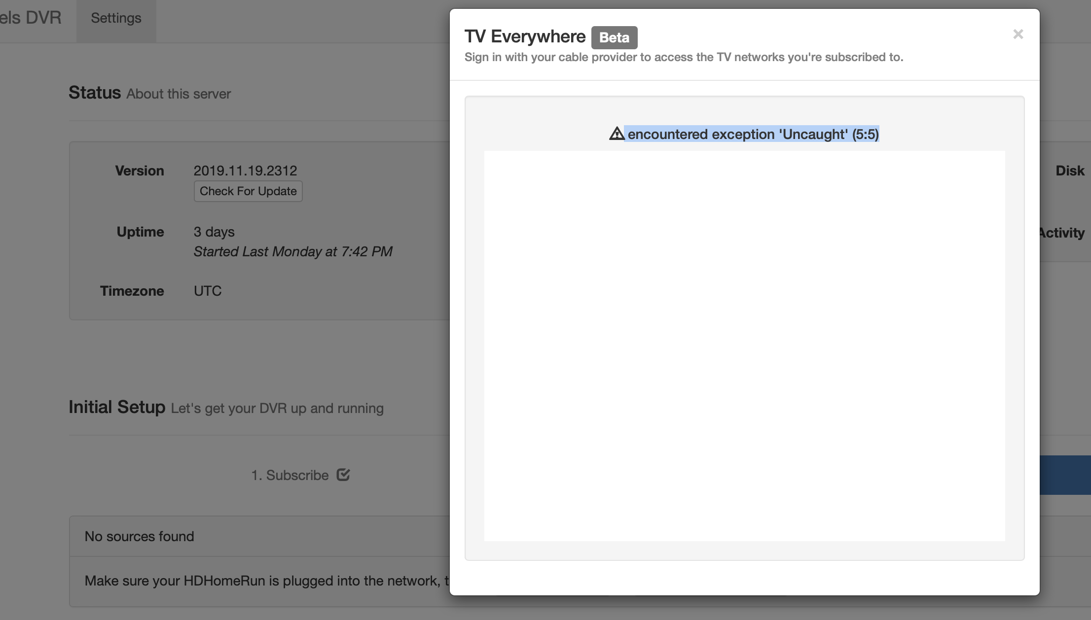 2019/11/30 08:31:07 [SYS] Starting Channels DVR v2019.11.19.2312 (linux-x86_64 pid:1) in /channels-dvr/data