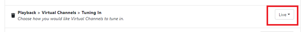 I've noticed that when I set the Client Settings option from the Channels DVR Server for Playback > Virtual Channels > Tuning In to the option "Live", all new clients default to "In Player Button". The clients do not pick up the option "Live". Everything else appears to be set by the server except this one option.
