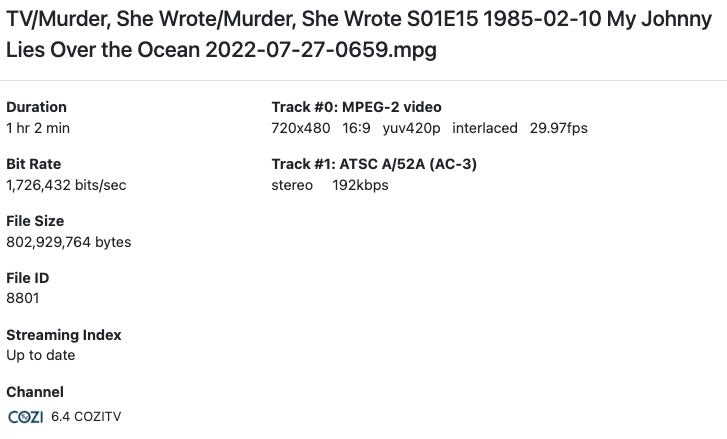 One of my virtual channels (Murder, She Wrote) appears to be in some weird state where nothing is in the guide, and playback seems to flash the first frame of the recording over and over (diagnostics submitted from iPad OS 15.6). I'm not sure how else to describe it - anybody experience this?