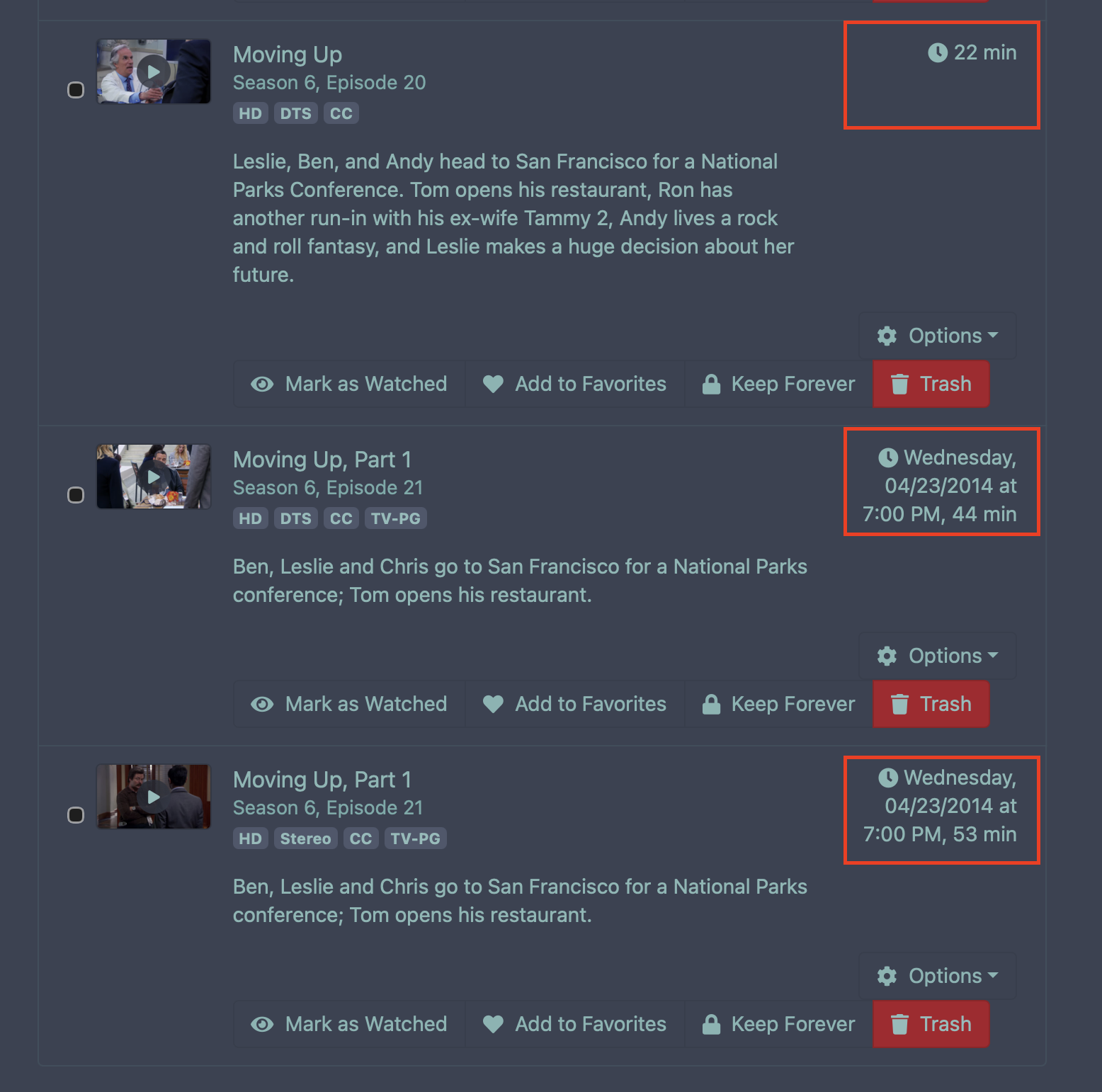 EDIT: The Season 6 episode is matched, but shows a strange date that other items do not show. There are 2 of the same episode because one is an extended episode, so the way it is listed for other media servers is an episode level special, which just matches as an episode on CDVR. There are other episodes like this but this issue is only on this one. The Reunion special is an unmatched special.