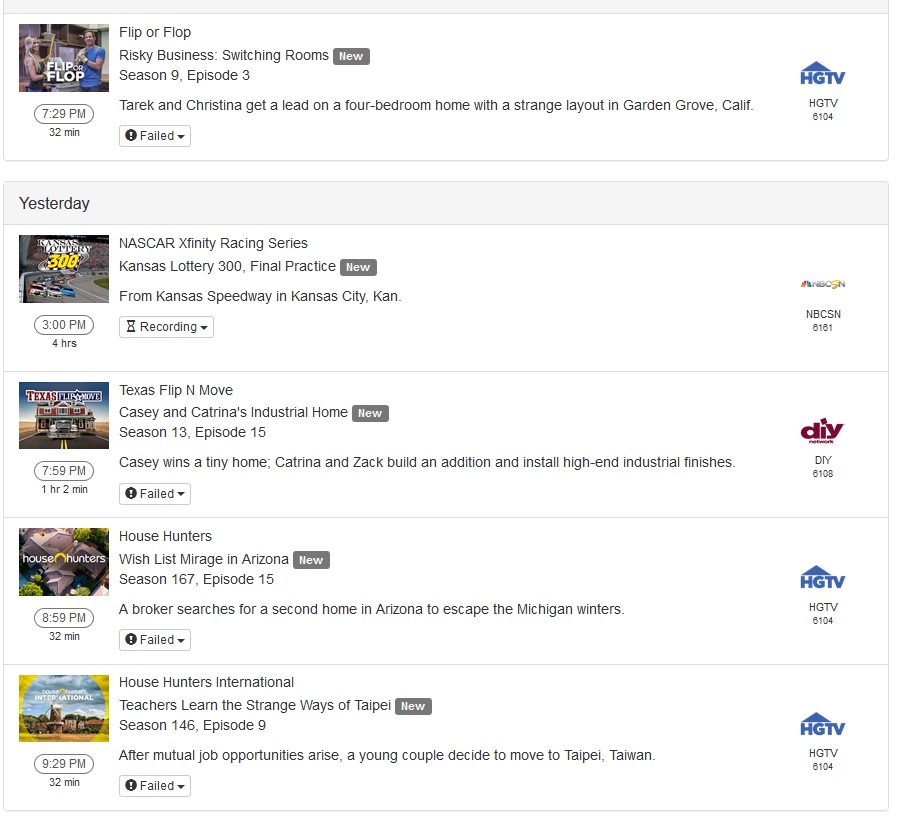 When a recording fails, or there is some other program fault, or a new channel is added to the EPG lineup (or a change otherwise), is there a place where a warning pops up that is very obvious to a typical household user, so that we know there is a problem?