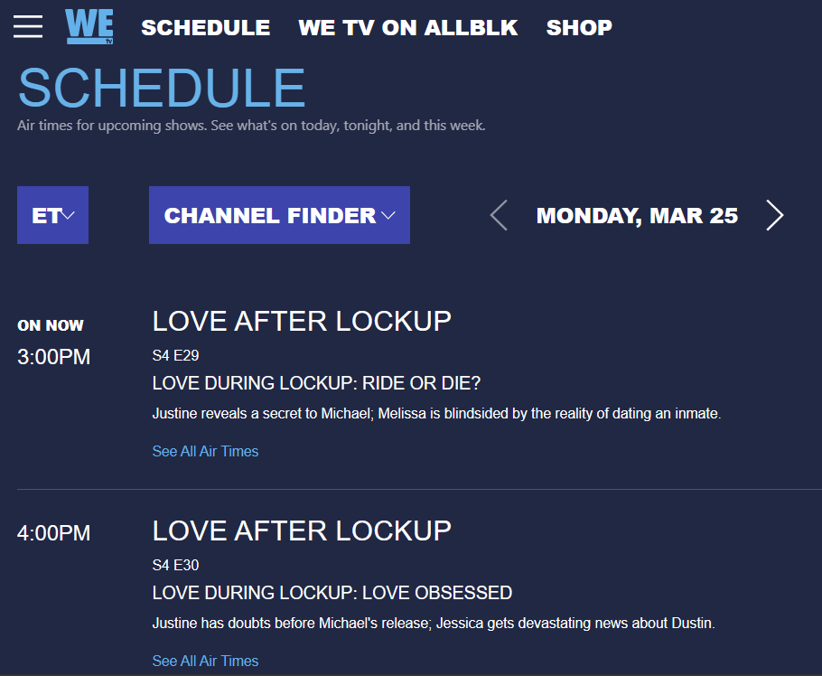 Even my XFINITY app shows Love After Lockup.... but playing bones.