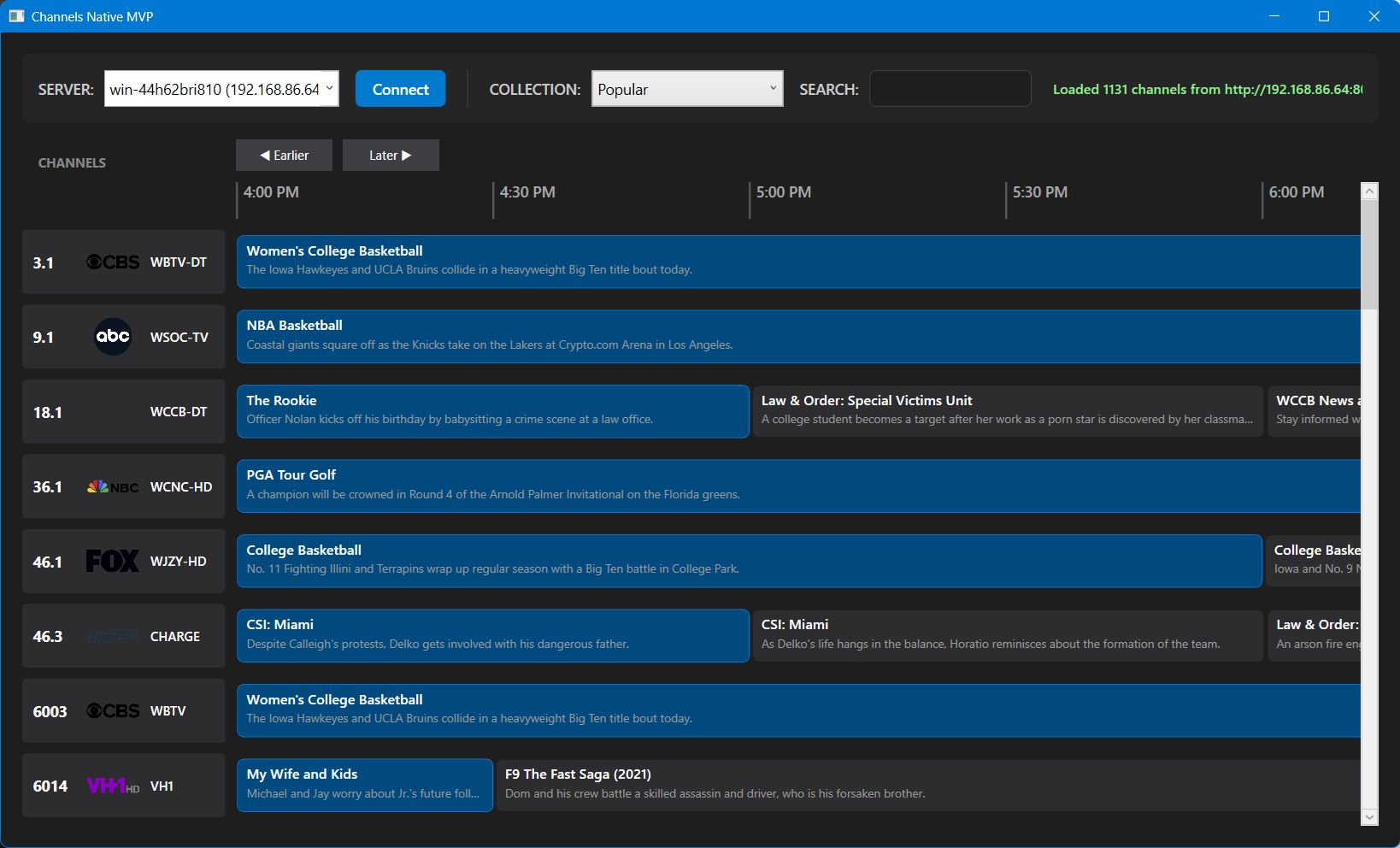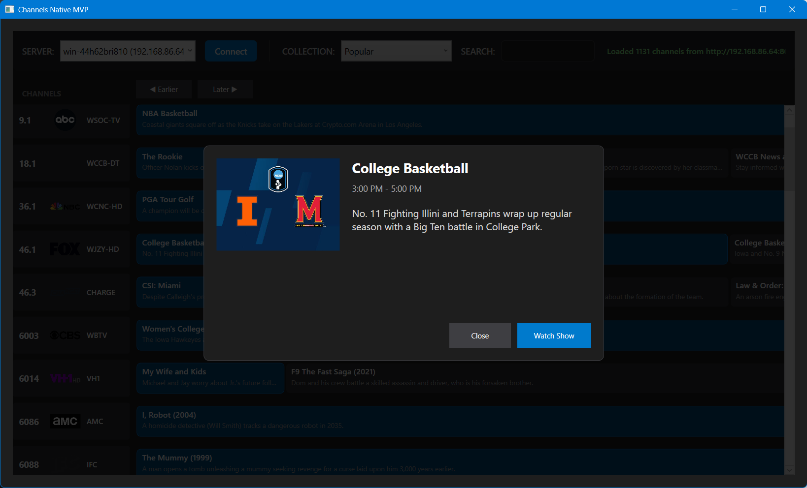 The first release won't have all features people will want. One exclusion will be Virtual Channels as added them in has been a pain. Right now I am filtering VC out until after the first release and subsequent bug fixes. I will be testing it with keyboards and remote controls but I am sure there will need to be changes. I will be working on a light colored theme tomorrow and more bug fixes. This will be a live TV app. I may add support for recorded content, but that will be down the road.