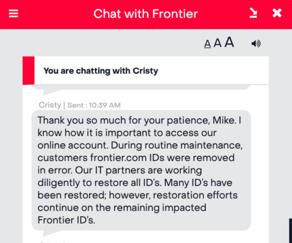I noticed this morning that I could not access my TVE channels. I tried logging in directly to my Frontier account and got this ugliness. I have not changed my password, and to my knowledge Channels is the only thing that regularly logs in using my credentials. Anyone else experiencing this?